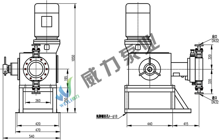 | 型號 | 流量 (L/h) | 電機功率 | 柱塞直徑 (mm) | 行程 (mm) | 泵速 (min-1) | 進出口 直徑DN (mm) | 重量(kg) |